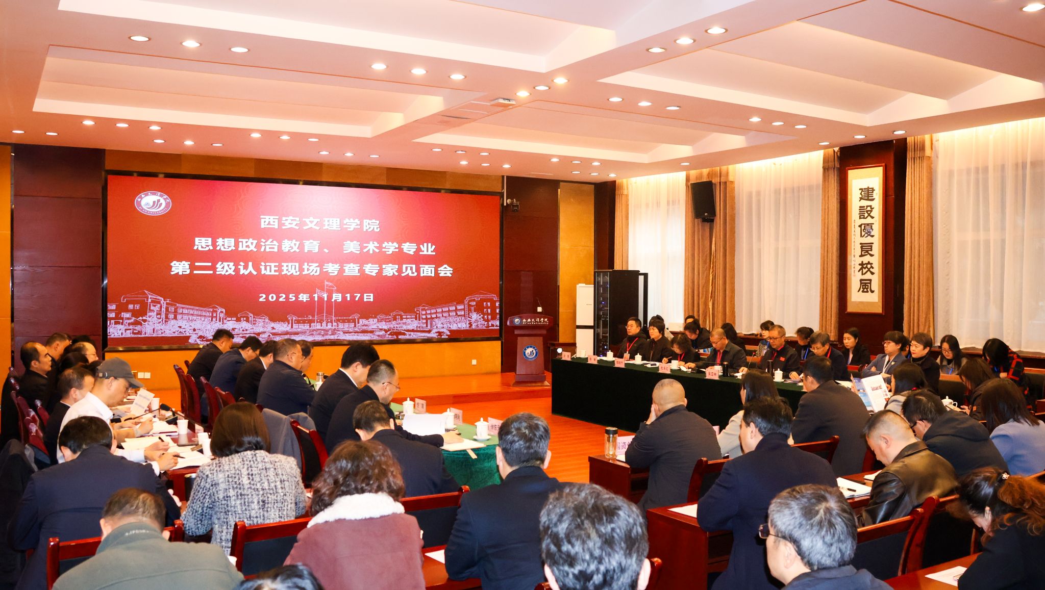 11月17日至19日,教育部师范类专业认证专家组对我校思想政治教育、美术学两个师范专业进行了为期三天的进校考查。此次认证专家组由8位专家及2位秘书组成,湖北科技学院教育学院原院长吴亚林教授担任联合认证专家组组长及思政教育专业组长,西华师范大学学前与初等教育学院原副院长杜永红担任美术学专业组长。17日上午,学校举行了专家见面会。会议由吴亚林主持,他介绍了专家组进校考查的任务、方法与纪律要求。我校校长陈刚代表学校对专家组表示欢迎,...