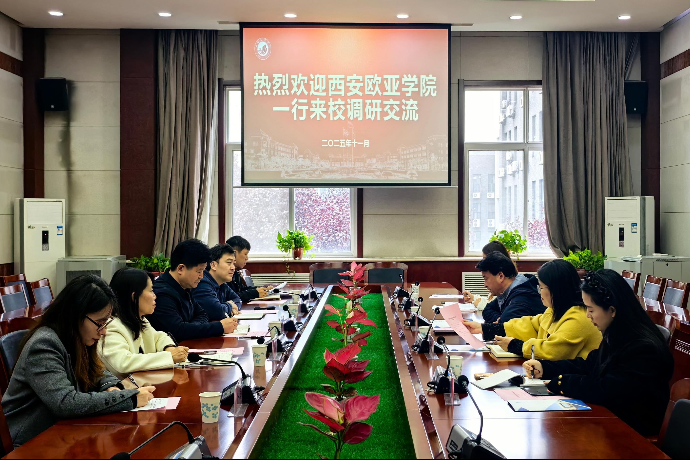 11月6日下午,西安欧亚学院校级顾问陈遇春一行来我校调研交流。校党委委员、副校长刘明利出席,研究生院相关人员参加会议。会议由党委委员、研究生院院长韦炜主持。刘明利代表学校对西安欧亚学院到访表示热烈欢迎,介绍了学校历史沿革及发展概况。他表示,学科建设工作是学校高质量发展的关键抓手,要坚持以服务社会需求为导向,整合全校资源与力量,对标对表,直面短板弱项,强化攻坚突破,全力推进各项工作落地见效。陈遇春就西安欧亚学院办学情况及未来学科建设的重点方向做了详细介绍。...